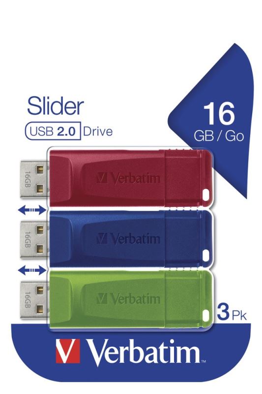 16GB 3PACK USB Flash 2.0 SLIDER Store'n'Go (červený+modrý+zelený) Verbatim P-blistr
