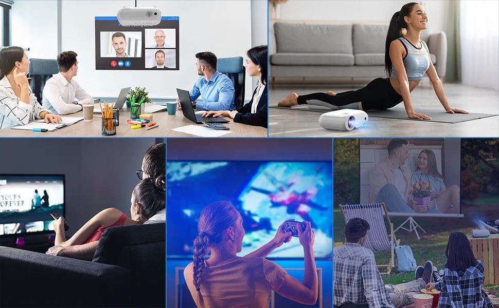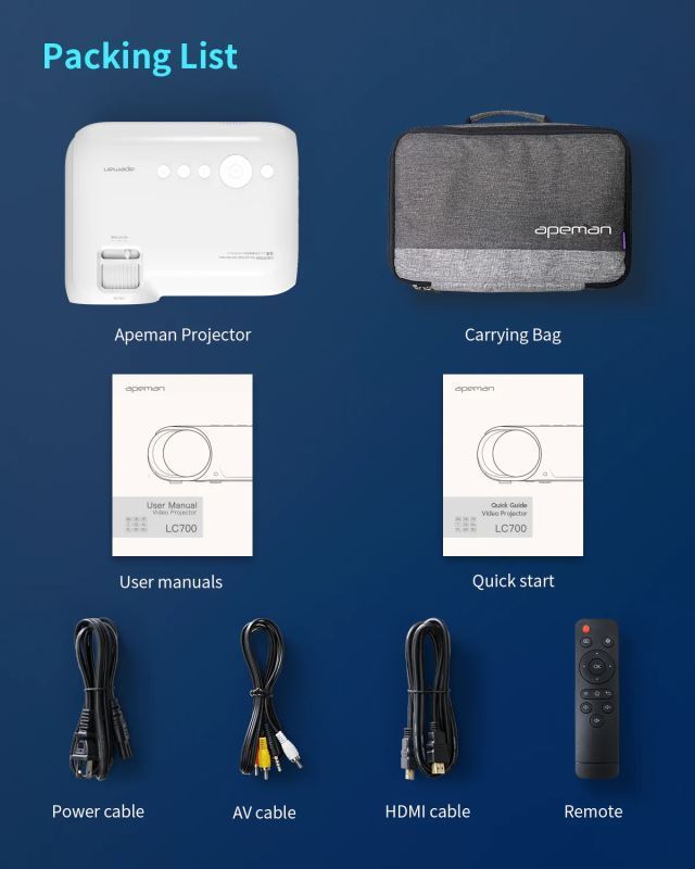 APEMAN Projektor LC700 1080P, Full HD je přenosný projektor pro domácí sledování filmů či sportovních přenosů nebo venkovní kino.