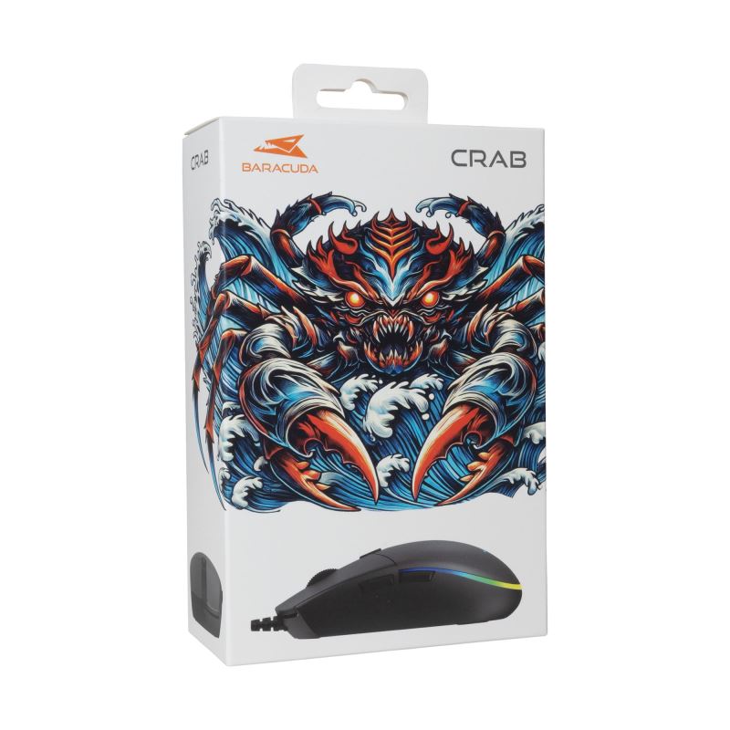 Herní myš Baracuda CRAB nabízí spolehlivý výkon, moderní LED podsvícení a ergonomický tvar pro pohodlné hraní i každodenní používání.Ergonomicky tvarovaná herní myš Baracuda CRAB přináší přesné snímání, pohodlné ovládání a moderní vzhled s LED efektem.