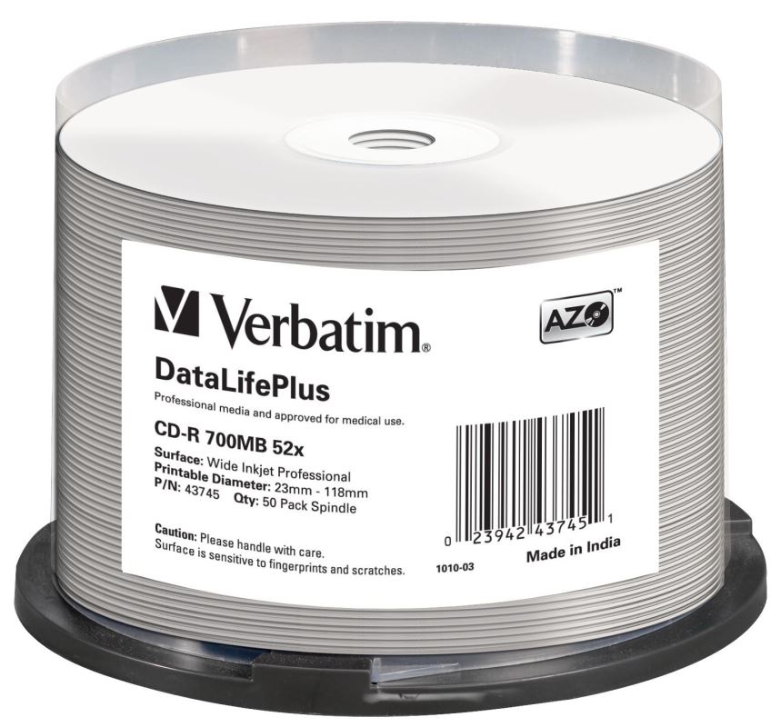 CD-R Verbatim DLP 700MB (80min) 52x WIDE Profesional Printable 50-cake NON-ID