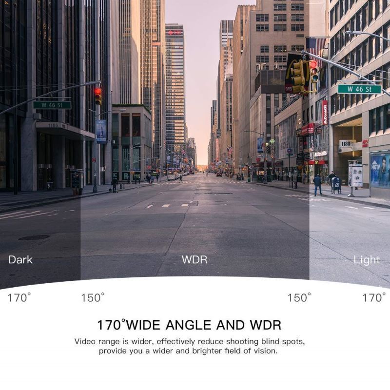 Vynikající rozlišení 1080p Full HD s širokoúhlým objektivem 170 ° poskytuje vynikající kvalitu obrazu. Širší zorné pole může účinně omezit slepá místa.