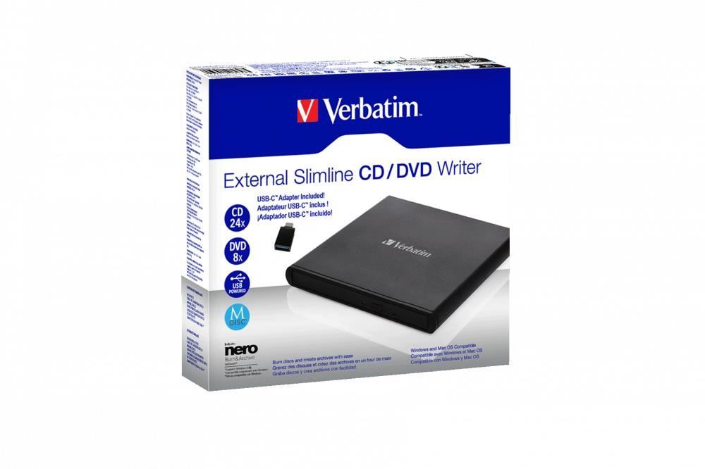 Kompaktní a lehká externí CD/DVD mechanika Verbatim umožňuje snadné a rychlé vypalování vlastních CD a DVD. Nero Backup Essentials burning software pro vypalování je součástí balení.