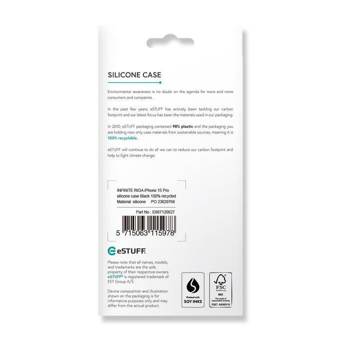 eSTUFF INFINITE Riga silicone case, pro iPhone 15 Pro, 100 % recyklovaný TPU, černý