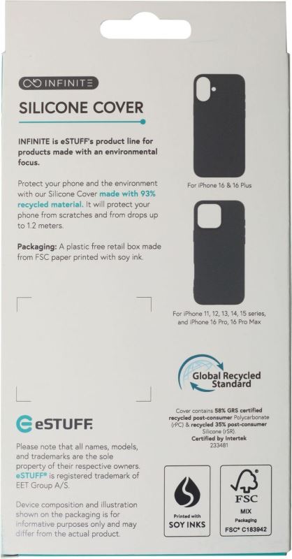 eSTUFF INFINITE Riga silikonový kryt pro iPhone 16 Pro Max, recyklovaný TPU, černý