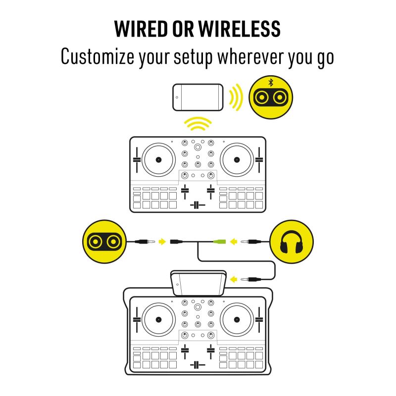 Díky bezdrátovému připojení přes Bluetooth® Low Energy lze kontrolér snadno propojit s chytrými telefony a tablety se systémem iOS i Android, přičemž ovládání probíhá skrze aplikaci djay.