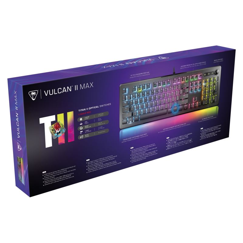 Vulcan II Max je mechanická herní klávesnice s optickými spínači TITAN II, přizpůsobitelným RGB osvětlením a chytrými klávesami, která nabízí bezkonkurenční výkon a odolnost.