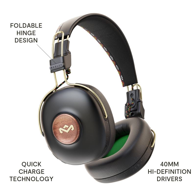 MARLEY Positive Vibration Frequency BT, sluchátka přes hlavu s ovladačem a mikrofonem - Užijte si pohodlný poslech bez omezení s lehkými bezdrátovými sluchátky s dlouhou výdrží baterie.