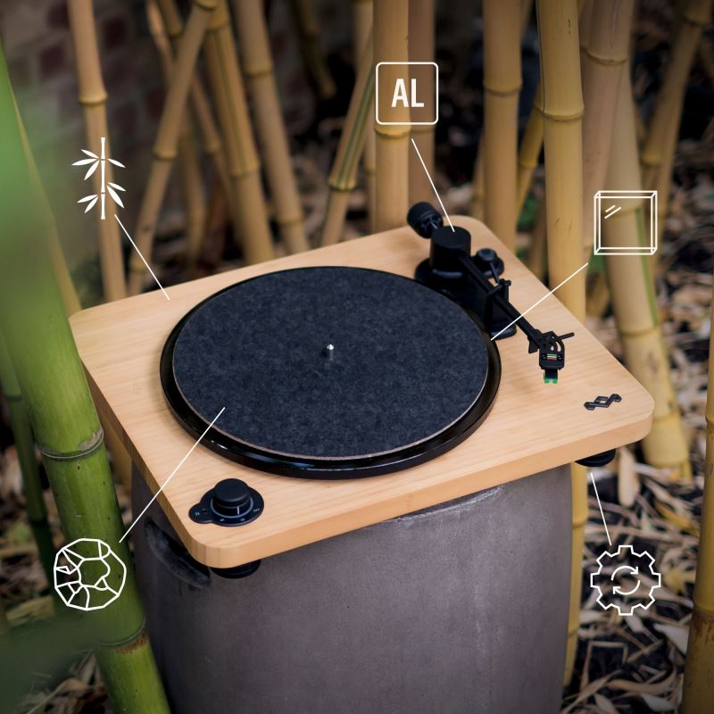 Gramofon je vyroben z udržitelných materiálů jako bambus, hliník, sklo a korek, což reflektuje filozofii značky House of Marley.