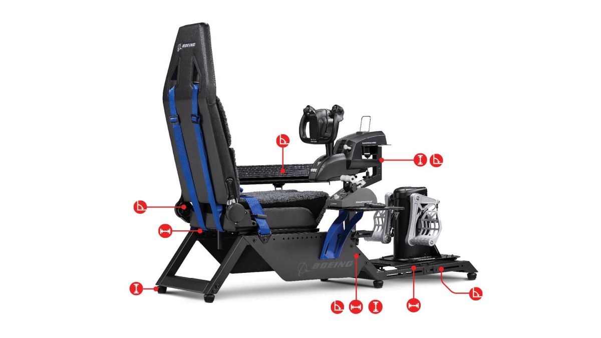 A konečně, Next Level Racing® spolupracoval s Thrustmaster®, aby zajistil bezproblémovou kompatibilitu s Thrustmaster® TCA Yoke Pack Boeing Edition pro zážitek z komerčních letů inspirovaný Boeingem.