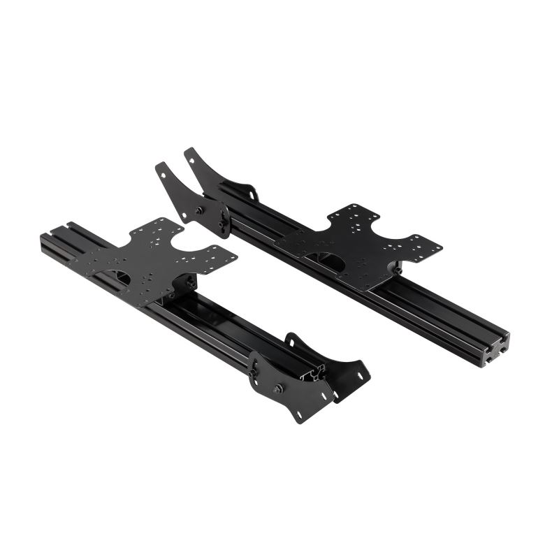 Jedinečná síla hliníkového výlisku znamená, že podporuje tři 21”-43” obrazovky s přiloženými držáky VESA a obsahuje výškově nastavitelné nožičky, vlastní spony pro vedení kabelů a vodováhu pro dokonalé pohlcující nastavení kokpitu závodního simulátoru.