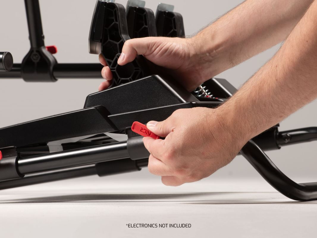 Speciální konstrukce rámu pedálů zamezuje jejich pohybu během intenzivního brzdění, čímž poskytuje stabilní a autentický závodní zážitek.