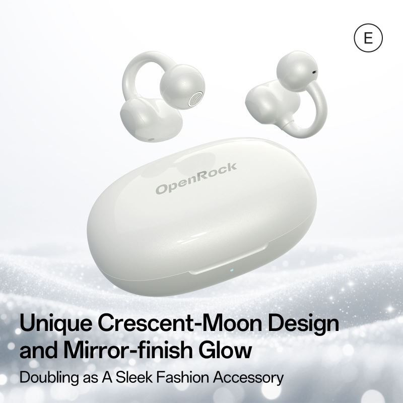 OpenRock E kombinují ergonomický tvar inspirovaný biomimetikou s moderním designem. Díky speciálním křivkám a povrchové úpravě působí jako elegantní módní doplněk, který zároveň nabízí vysoký komfort při nošení. Ultra-měkké TPU a paměťový titanový drát o tloušťce 0,5 mm zajišťují ideální přítlak, zatímco konstrukce přátelská k brýlím eliminuje tlak a únik zvuku.