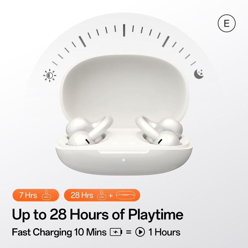 OpenRock E jsou ultralehká open-ear sportovní sluchátka vážící pouhé 4 g, která kombinují stylový ergonomický design s vysokým komfortem nošení. Nabízejí kvalitní zvuk díky 10mm měničům s algoritmem LISO Lite, herní režim s nízkou latencí 60 ms a čisté hovory díky AI Noise Cancellation. S výdrží až 28 hodin poslechu, rychlonabíjením (10 min = 1 h), odolností IPX4 a stabilním připojením přes Bluetooth 6.0 jsou ideální volbou pro sport, cestování i každodenní použití.
