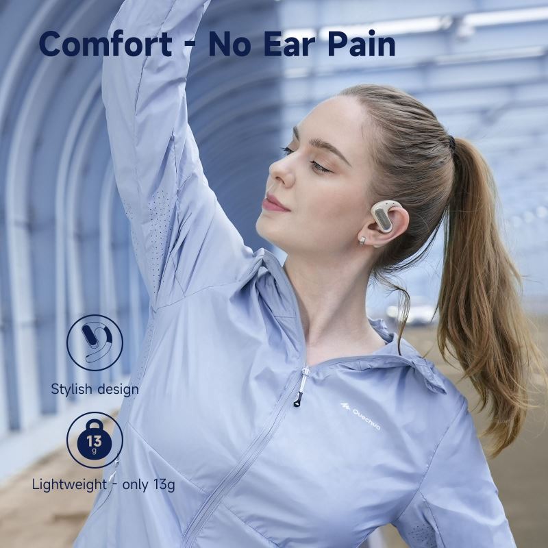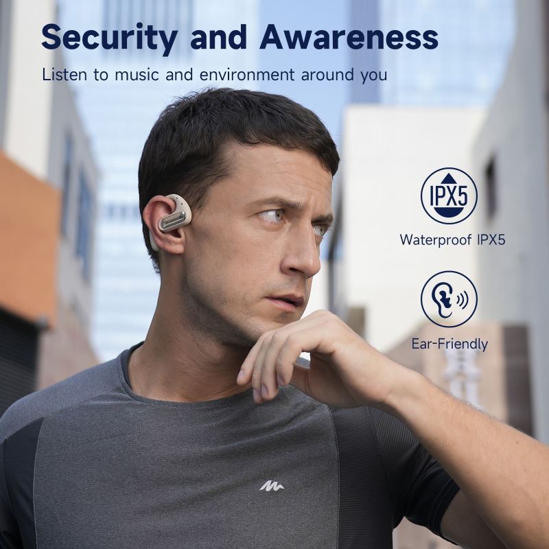 Otevřená konstrukce s vedením zvuku vzduchem (Air Conduction) zajišťuje pohodlný a bezpečný poslech bez izolace od okolí.