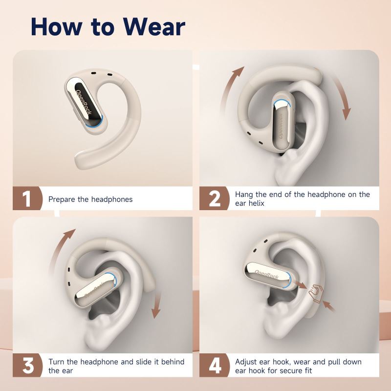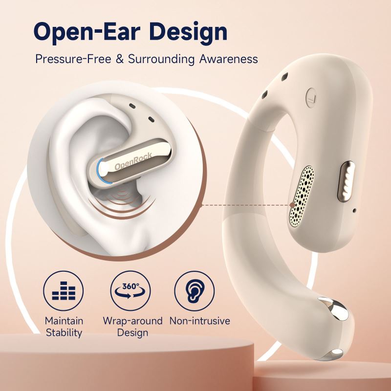 OpenRock Pro – Sportovní otevřená bezdrátová sluchátka, Bluetooth, béžová