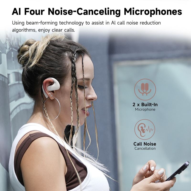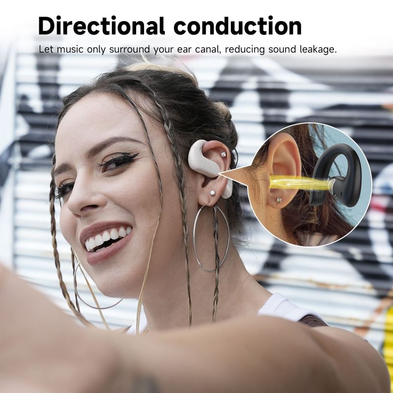 Otevřená konstrukce s vedením zvuku vzduchem (Air Conduction) zajišťuje pohodlný a bezpečný poslech bez izolace od okolí.