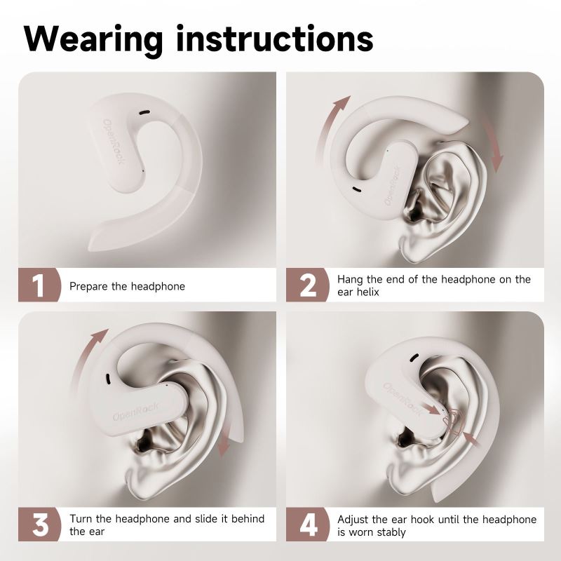 OpenRock S – Sportovní otevřená bezdrátová sluchátka, Bluetooth, béžová