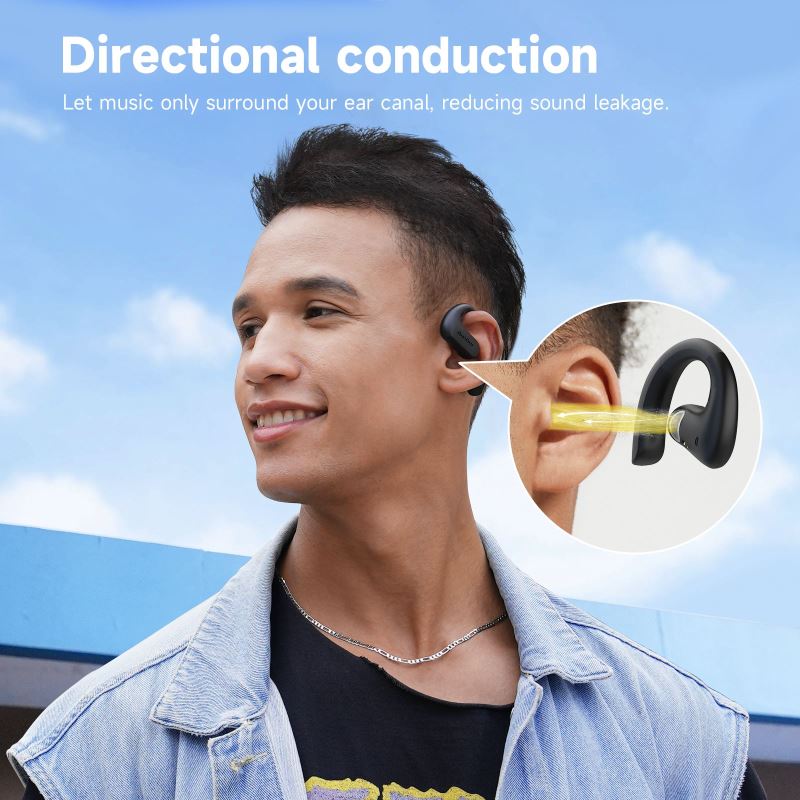 Otevřená konstrukce s vedením zvuku vzduchem (Air Conduction) zajišťuje pohodlný a bezpečný poslech bez izolace od okolí.