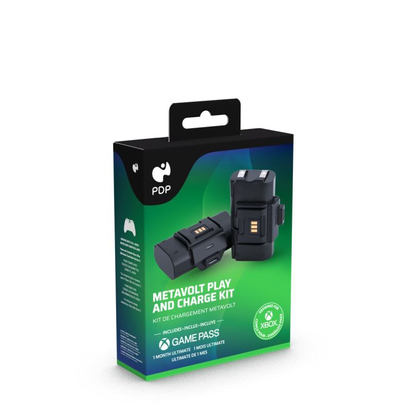 LED indikátory vás informují o stavu nabití tím, že se během nabíjení pohybují a při plném nabití zůstavají statické. METAVOLT Play & Charge Kit funguje se všemi bezdrátovými ovladači Xbox a je oficiálně licencována společnosti Xbox.