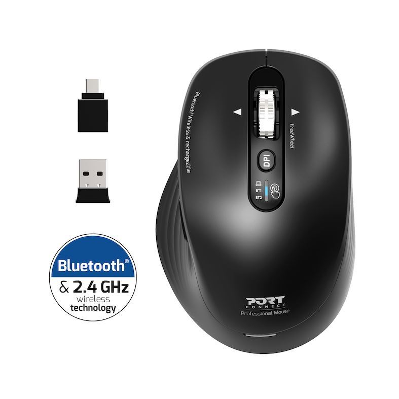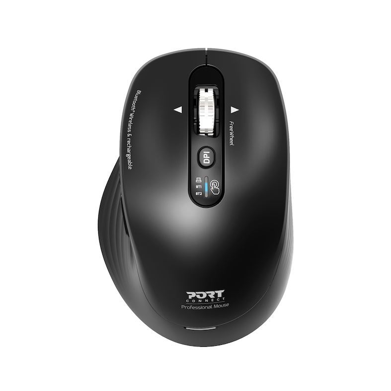 PORT CONNECT Business & Office COLLECTION, bezdrát.dobíjecí myš,Bluetooth,FreeWheel,3200 DPI,černá
