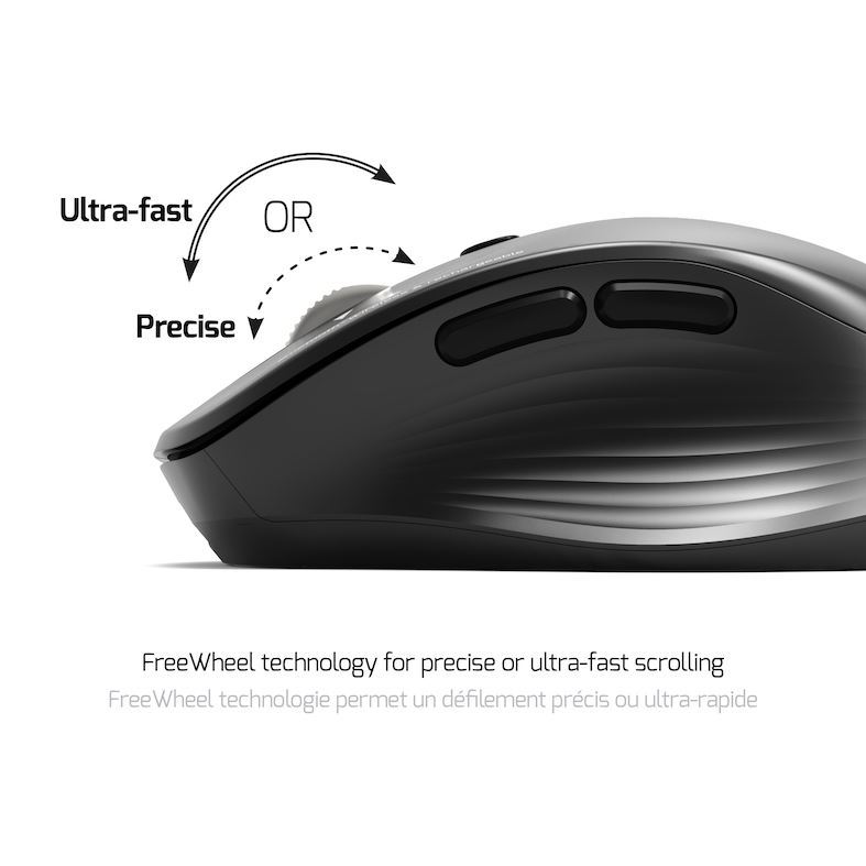 Duální připojení vám umožní snadno přepínat mezi zařízeními, zatímco technologie FreeWheel® poskytuje přesné a rychlé rolování, ideální pro procházení rozsáhlých dokumentů.