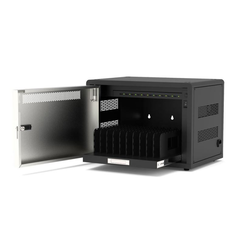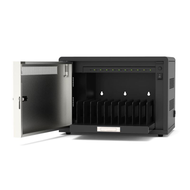 Nejefektivnější řešení pro bezpečné nabíjení až 10 zařízení - Originální napájecí skřínka s funkcí dobíjení a bezpečnostním zámkem Umožňuje nabíjet, bezpečně ukládat a spravovat až 10 tabletů, mobilních telefonů a dalších USB zařízení. Kovová skříň zajistí ochranu zařízení.
