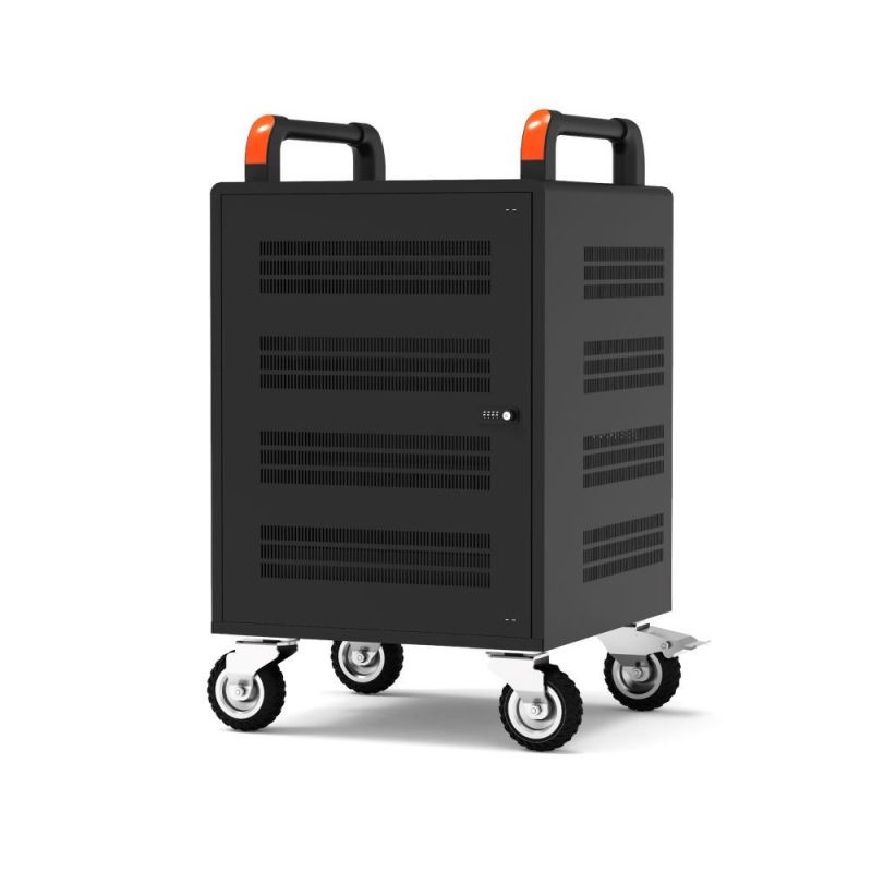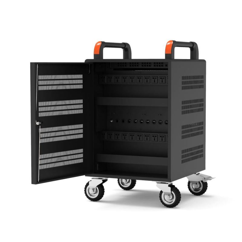 Optimální zabezpečení - Tato nabíjecí skříň je ultra bezpečná díky zámku se 3 uzamykacími body. Všesměrová gumová kolečka s brzdou poskytují optimální stabilitu