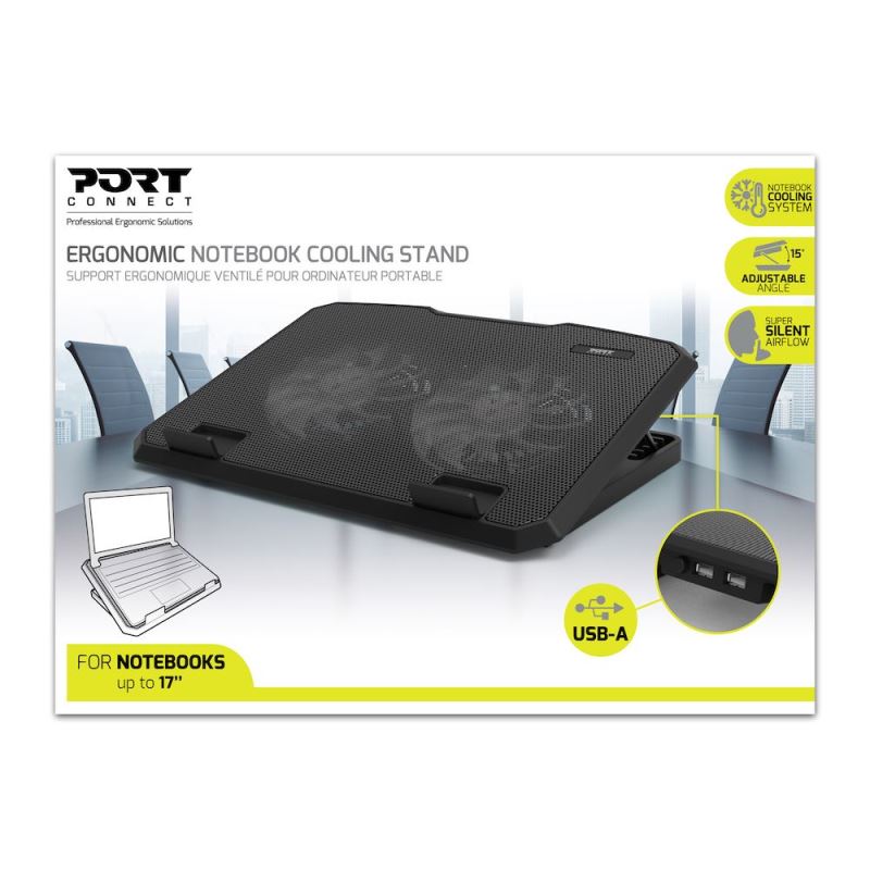 PORT CONNECT COOLER PRO, chladící stojan na notebook, 2x USB, černý