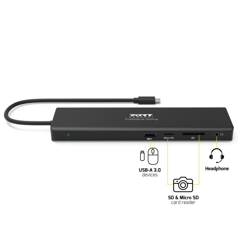 - Správa až 11 periferií: 1x DisplayPortTM, 1x VGA, 1x HDMI, 2x USB-A 3.0, 2x USB-A 2.0, 1x Ethernet, 1x SD karta, 1x Micro SD karta & 1x Combo Jack Audio/Mikrofon