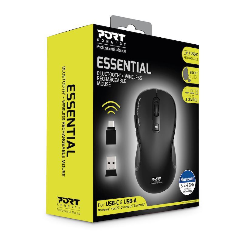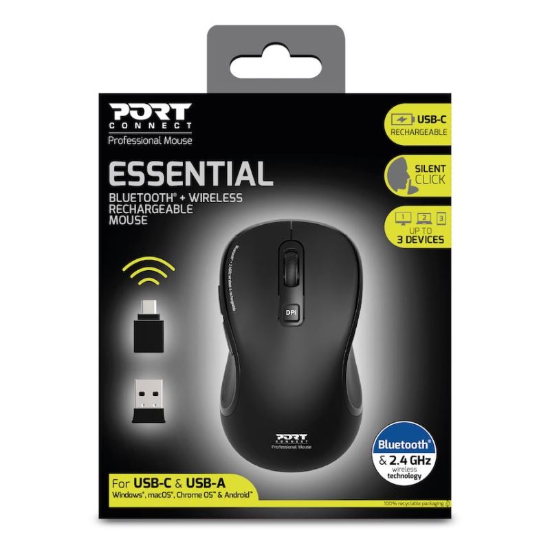 - 1 PORT CONNECT ESSENTIAL Bluetooth® + bezdrátová a dobíjecí základní myš