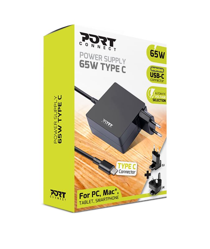 PORT CONNECT EU + UK napájecí adaptér k notebooku, 5-20V, 3-3,2A, 65W, USB-C konektor