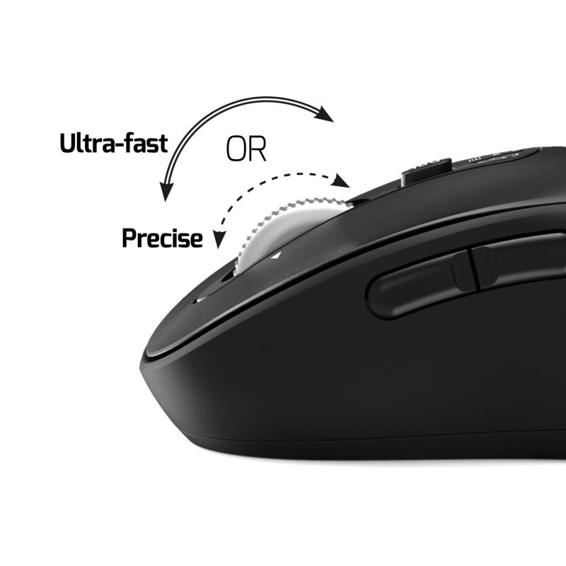 Tato myš umožňuje připojení až ke třem zařízením současně – jednomu přes 2,4GHz bezdrátový přijímač a dvěma prostřednictvím Bluetooth®.