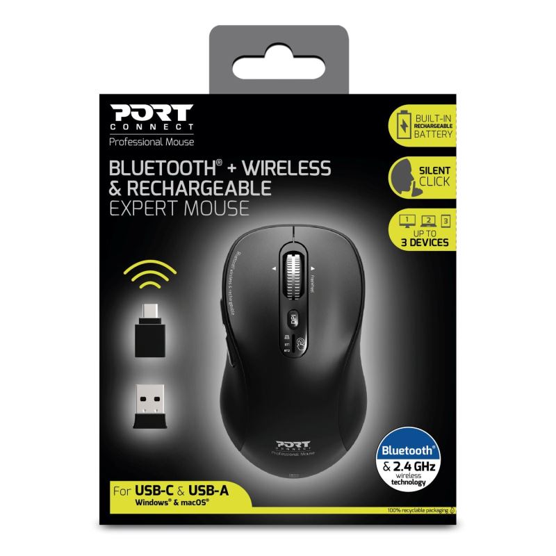 PORT CONNECT EXPERT, Bluetooth a 2,4GHz bezdrátová nabíjecí myš, USB-C, černá