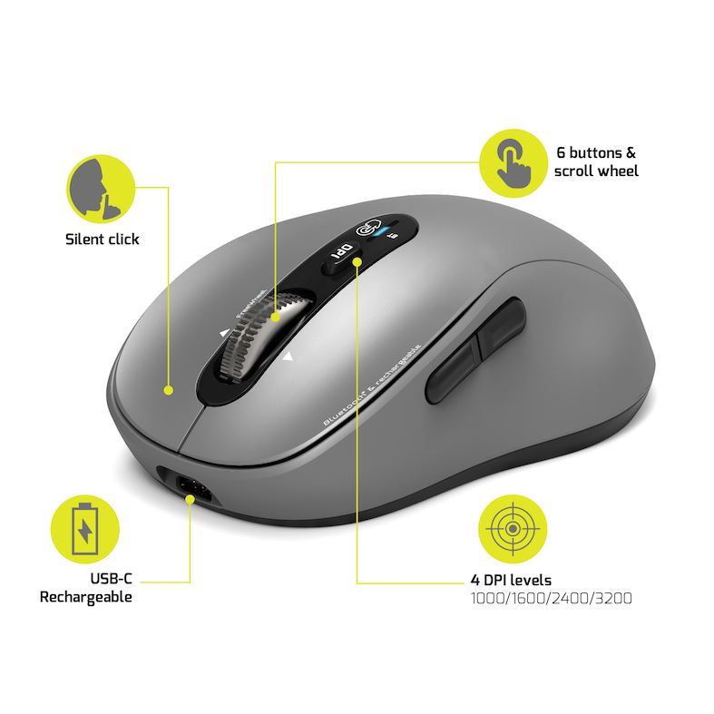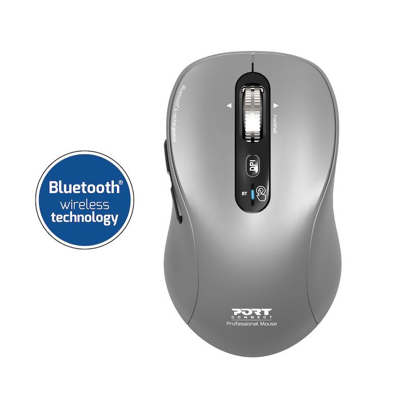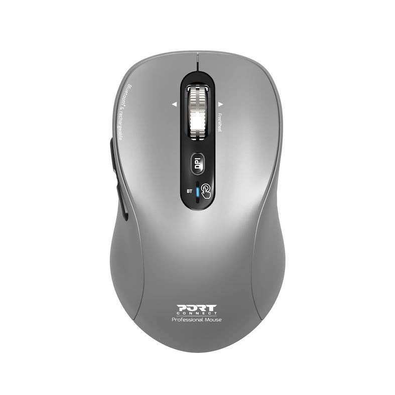 PORT CONNECT Expert & Mac COLLECTION, bezdrátová dobíjecí myš, Bluetooth, FreeWheel, 3200 DPI, šedá