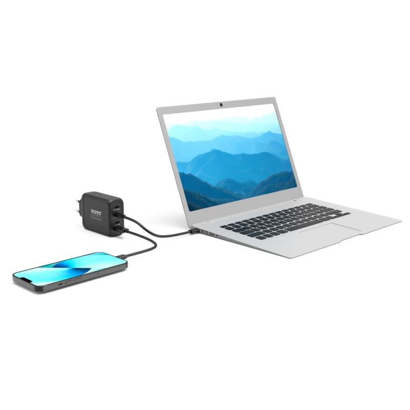 PORT CONNECT GaN síťová nabíječka pro 2xUSB-C PD a 1xUSB-A QC, 120W, černá