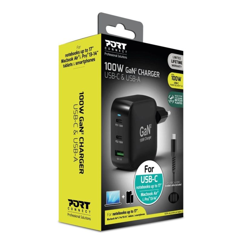 PORT CONNECT GaN2 - Výkonná GaN2 nabíječka pro notebooky až do 17", MacBook Air & Pro, tablety i smartphony.