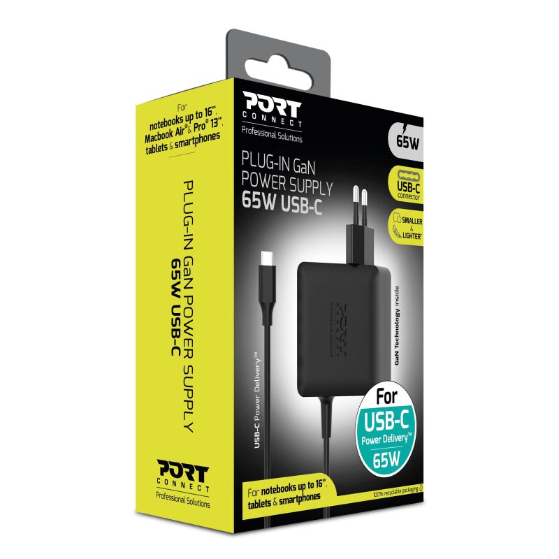 PORT CONNECT GaN2 síťový napájecí adaptér USB-C Power Delivery PLUG-IN, 65 W, černá