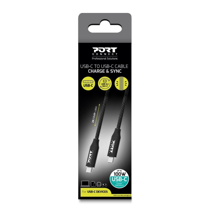 PORT CONNECT kabel USB-C na USB-C, 100 W, 2 m, černý
