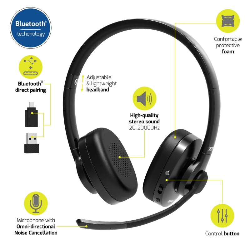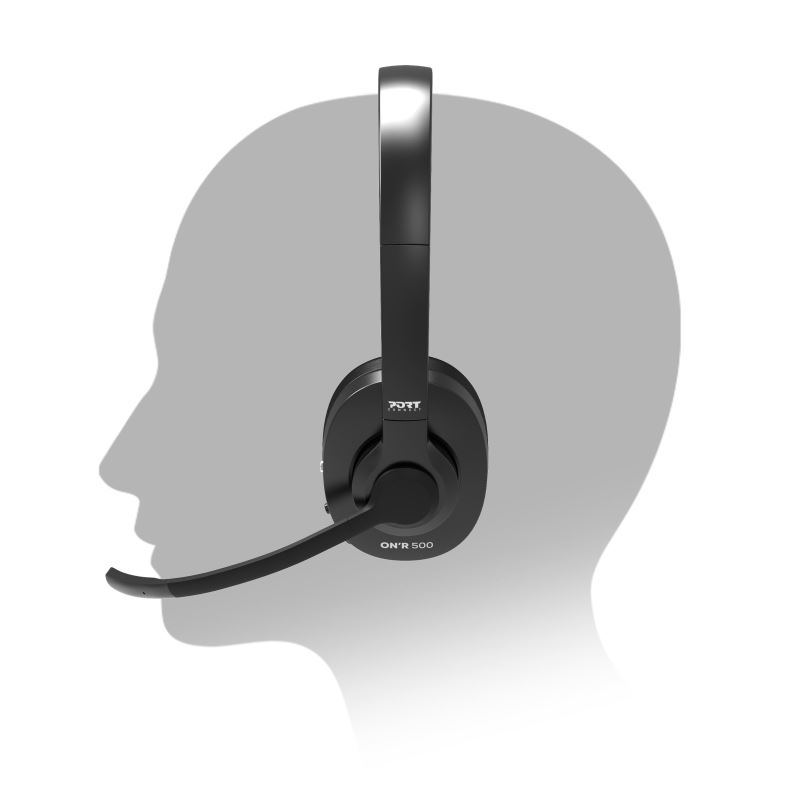 PORT CONNECT ON'R 500 bezdrátová binaurální sluchátka s mikrofonem pro čistý zvuk a flexibilní připojení.