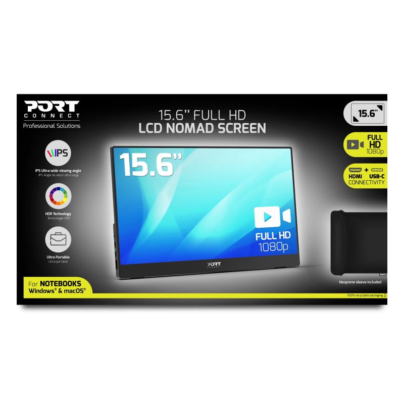PORT CONNECT monitor Nomad FULL HD LCD je ultra tenký a lehký formát ideální pro mobilitu.
