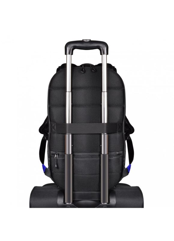 Tajná zadní kapsa vám umožní schovat a uchovávat například cestovní pas nebo chytrý telefon. Popruh vám umožní připevnit batoh na rameno vozíku.