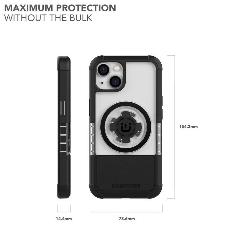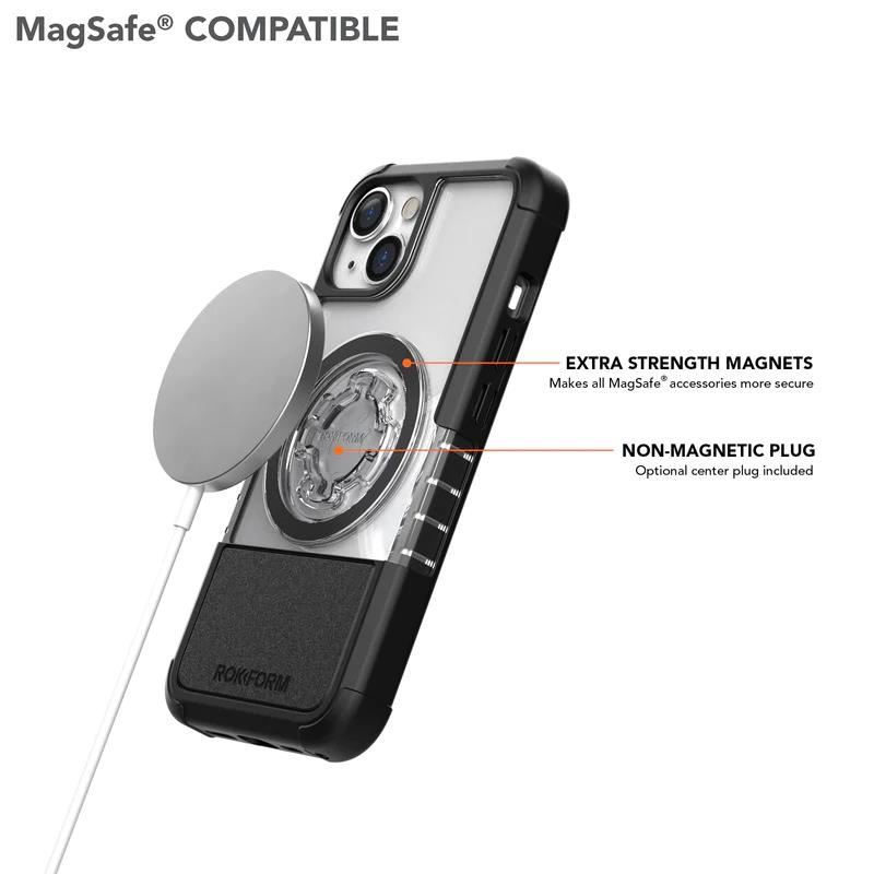 Nejnovější generace pouzdra ROKFORM pro serii iPhone 14 je odolné stylové pouzdro, které je lehké, tenké, kompaktní a perfektně chrání při pádu. Bezdrátové nabíjení. MagSafe®.