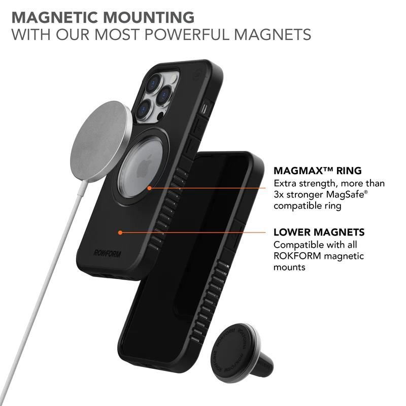 Kryt na mobil obsahuje vyjmutelný magnet RokSafe™, pomocí kterého můžete zařízení připevnit na jakýkoli kovový povrch. Magnet je neodymový, díky čemuž je zaručeno bezpečné připevnění, které neovlivní vaše GPS, Bluetooth, Wifi, kreditní karty, platby Apple, přenos dat ani fotoaparát.