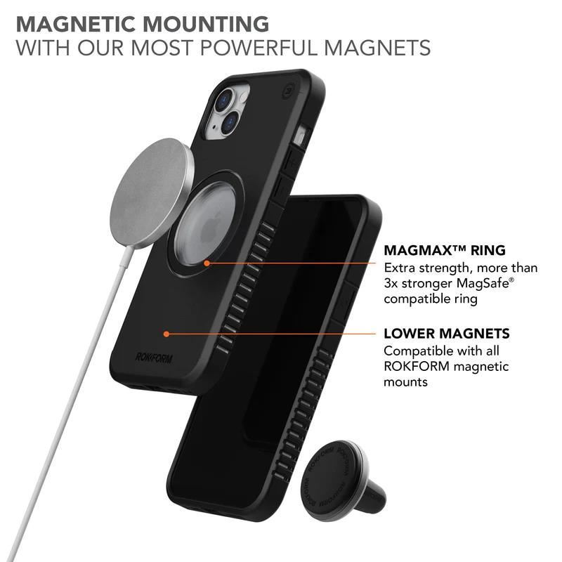 Kryt na mobil obsahuje vyjmutelný magnet RokSafe™, pomocí kterého můžete zařízení připevnit na jakýkoli kovový povrch. Magnet je neodymový, díky čemuž je zaručeno bezpečné připevnění, které neovlivní vaše GPS, Bluetooth, Wifi, kreditní karty, platby Apple, přenos dat ani fotoaparát.