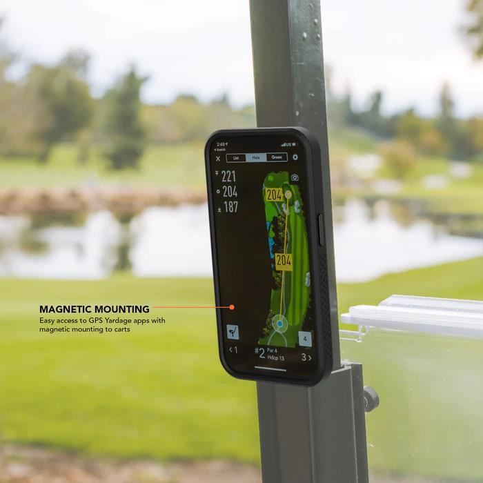 Pouzdro Eagle 3 iPhone Golf Case obsahuje sadu speciálně navržených extra silných magnetů kompatibilních s MAGMAX MagSafe spolu s párem spodních magnetů.