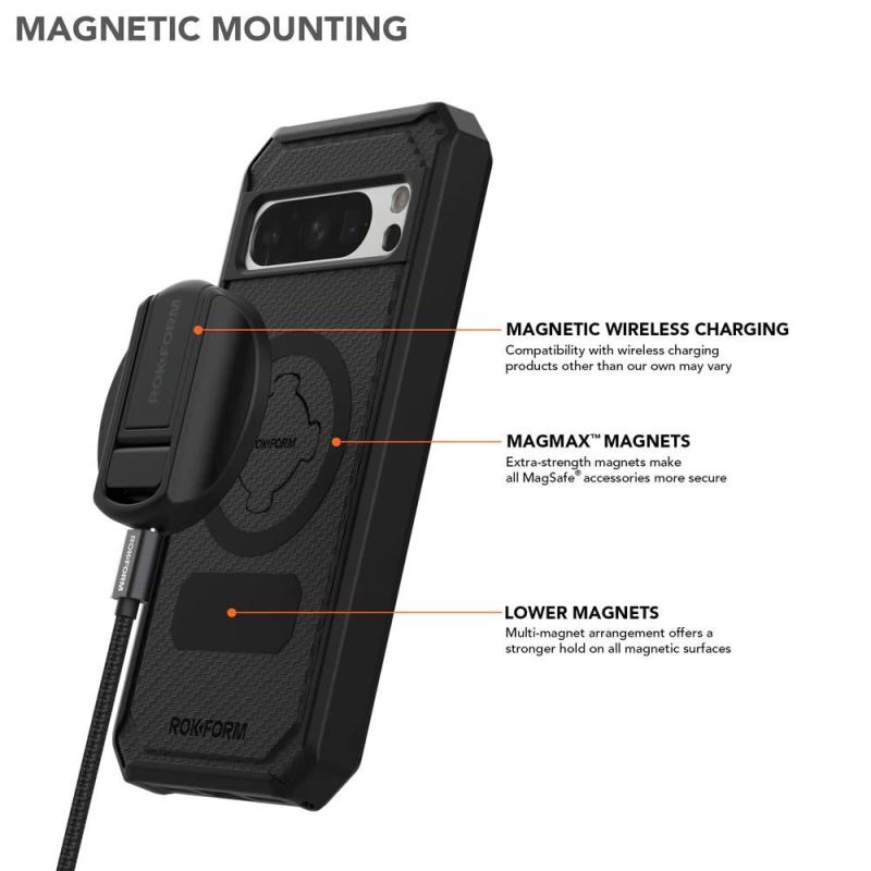 Pouzdro Rugged Pixel Pro Case je kompatibilní se všemi našimi twist-lock otočnými a magnetickými úchyty a poskytuje bezpečné a pohodlné řešení montáže pro auta, kola, motocykly, golfové vozíky a jakýkoli magnetický povrch.