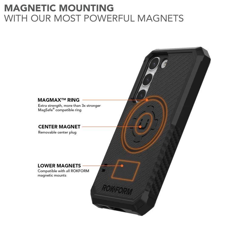 Rokform Kryt Rugged pro Samsung Galaxy S23 - nejprodávanější pouzdro od Rokform, je pro nový Samsung Galaxy S23 lepší, než kdy dříve. Nyní s integrovaným magnetickým systémem MAGMAX™
