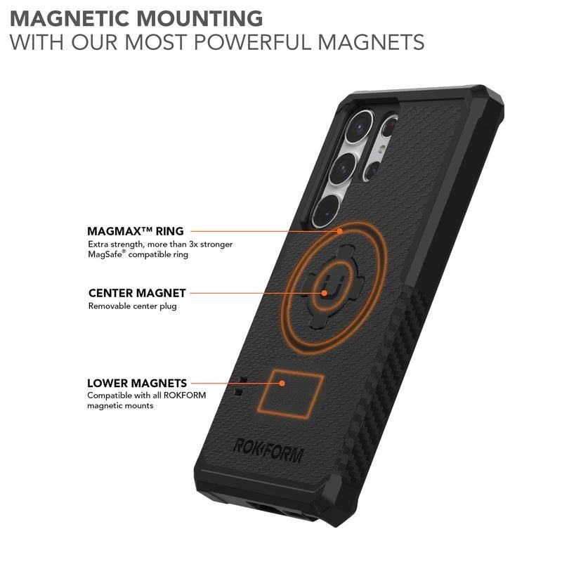 Rokform Kryt Rugged pro Samsung Galaxy S23 Ultra, nejprodávanější pouzdro od Rokform, je pro nový Samsung Galaxy S23 Ultra lepší, než kdy dříve. Nyní s integrovaným magnetickým systémem MAGMAX™