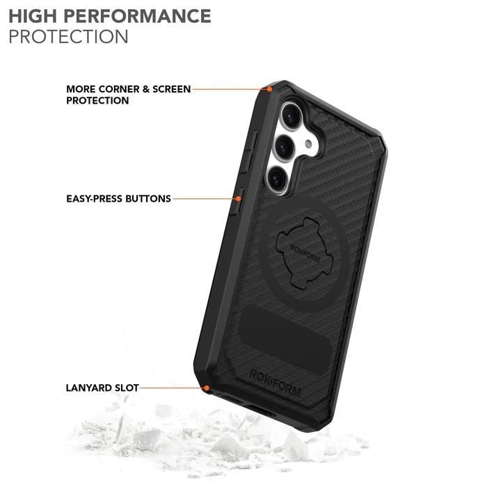 Rokform Kryt Rugged pro Samsung Galaxy S24 - nejprodávanější pouzdro od Rokform, aktualizované a lepší, než kdy dříve. S integrovaným magnetickým systémem MAGMAX™