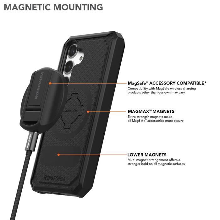 - Magnetické příslušenství: Bez problémů funguje s bezdrátovými nabíječkami a příslušenstvím Rokform.